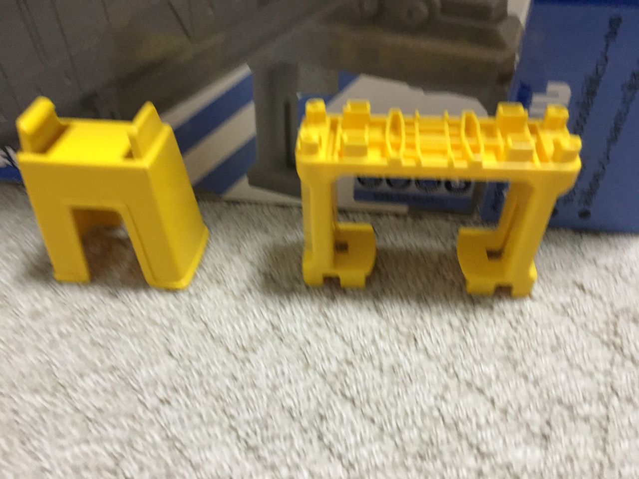 この黄色の一段の「ブロック橋脚」が橋脚の基本単位になります。この黄色橋脚を積み上げていけば立体的なレイアウトが組み上がります。他には「ブロック橋脚」の4分の1の高さの「4分の1橋脚」にもお世話になります。