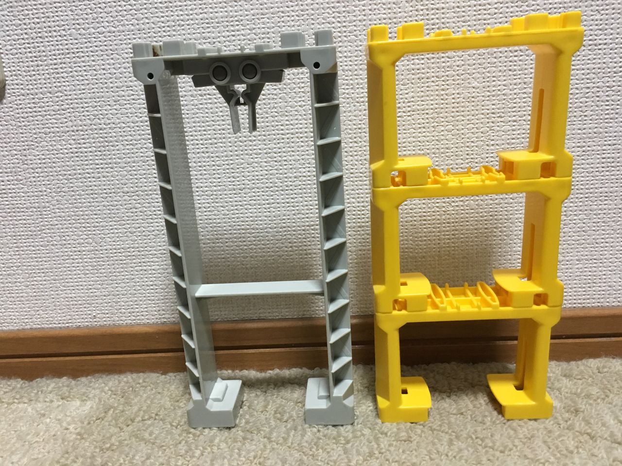 プラレールには限定品としてモノレールタイプの製品があり、レールを縦に使う遊び方があります。そのレールを縦に並べるための橋脚が「モノ橋脚」です。