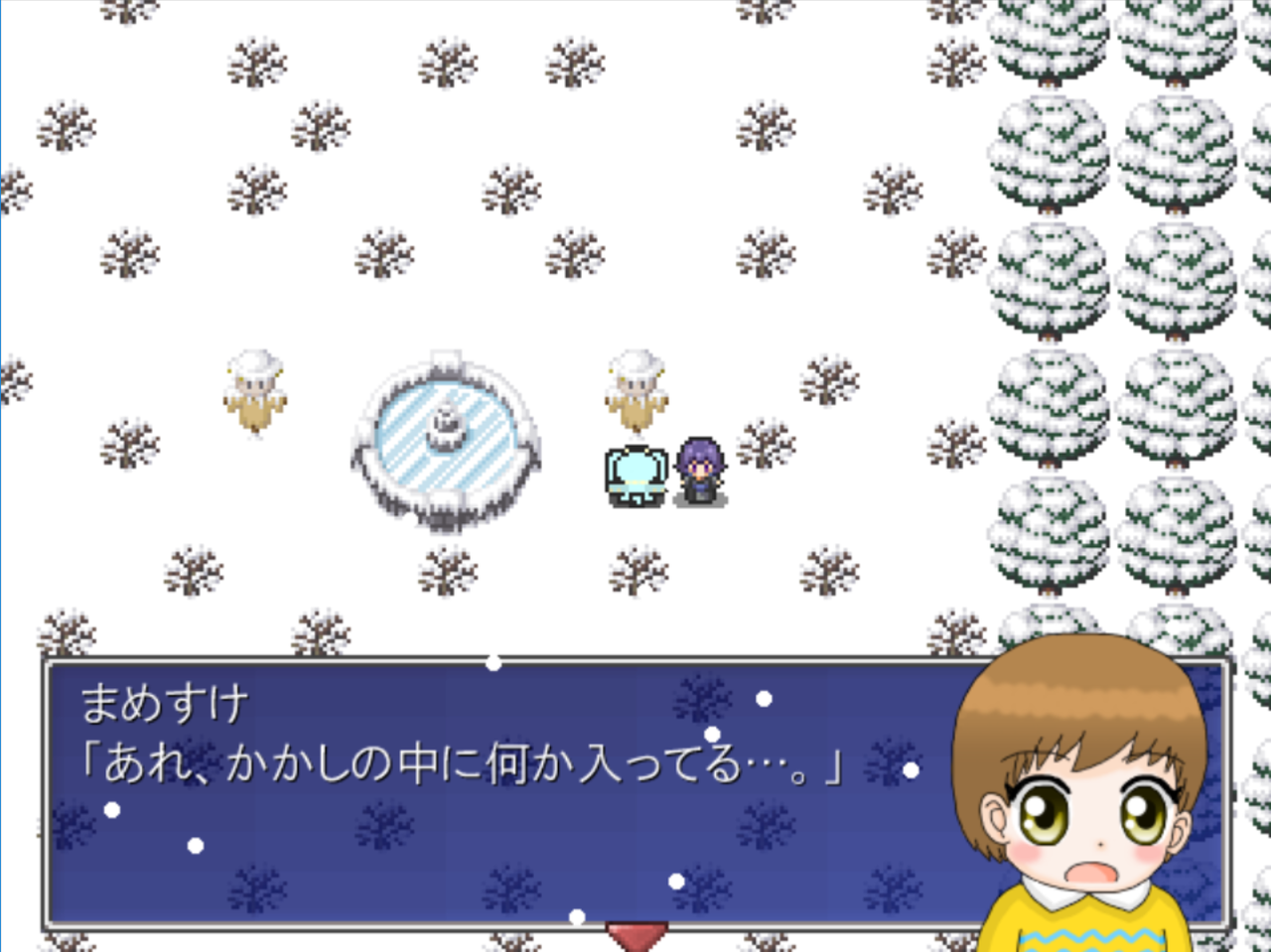 もう一つは雪の面で噴水の右側のかかしを調べると入手できます。