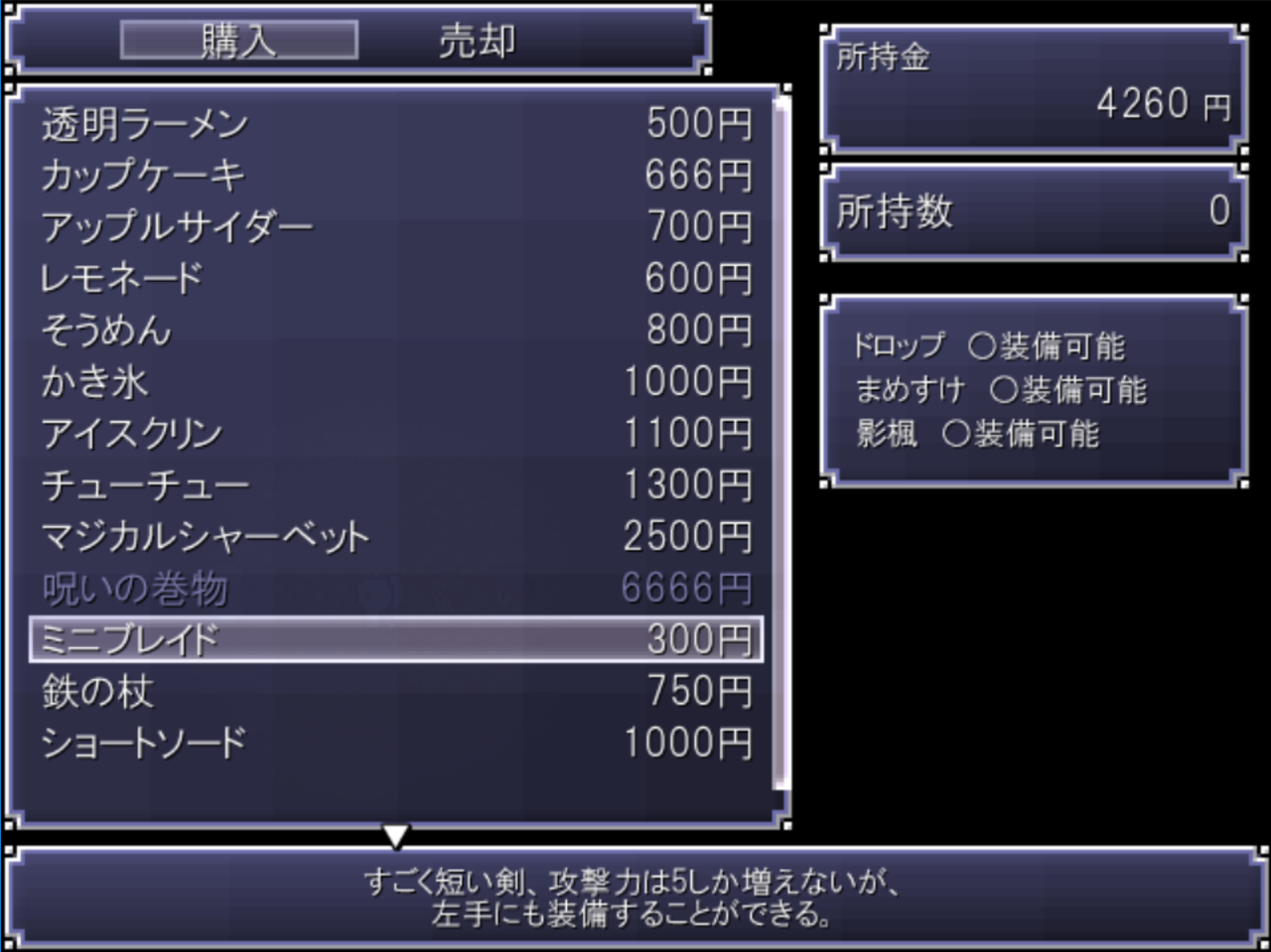 なお、洞窟内には武器や回復アイテムを買えるお店があるのでぜひ立ち寄りましょう。とくにミニブレイドは一度に二度攻撃が出来るようになる優れものです。値段も非常に安いので確実に手に入れておきましょう。