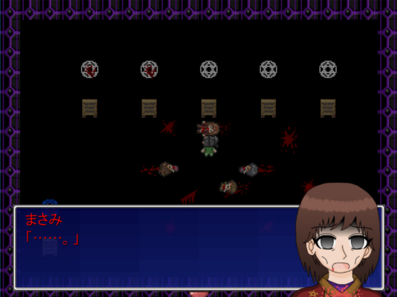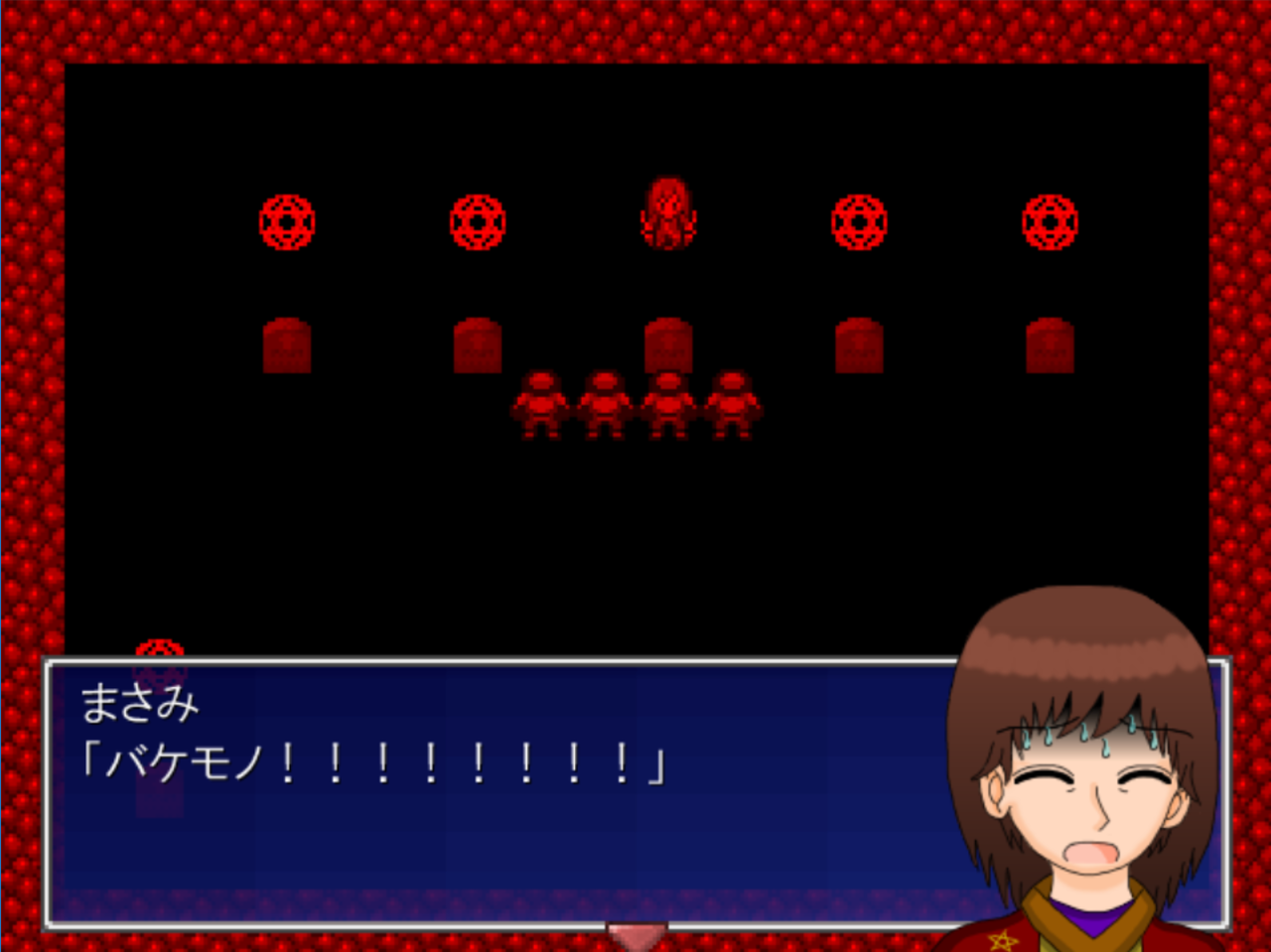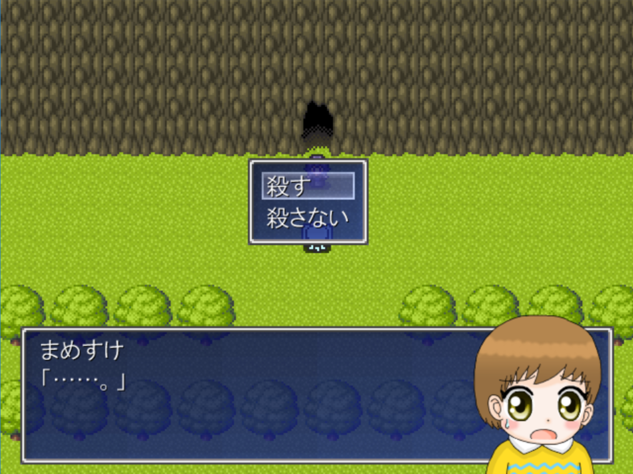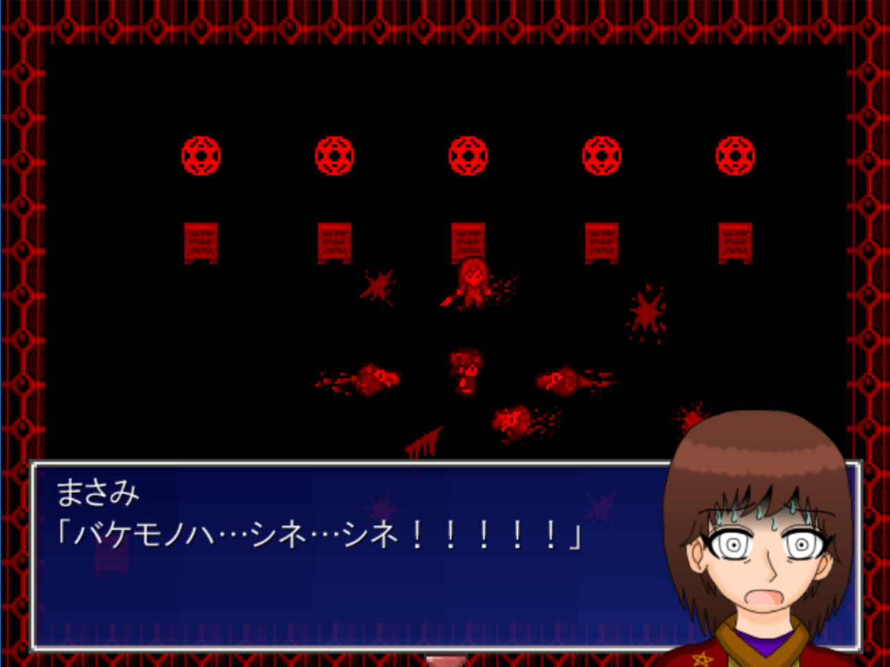 製作者が自分で作ったキャラクターを殺す悪夢。「あ…ああ…!!」とか言ってますが、あんた製作者なんだから自分でどうにかしろよ。