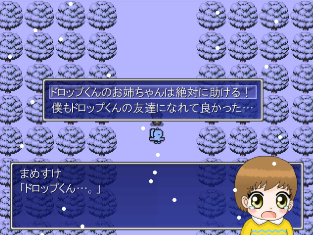 そしてドロップは毒にやられダウン。まめすけくんの必死の呼びかけもむなしくドロップは帰らぬ人(ドラゴン?)に。