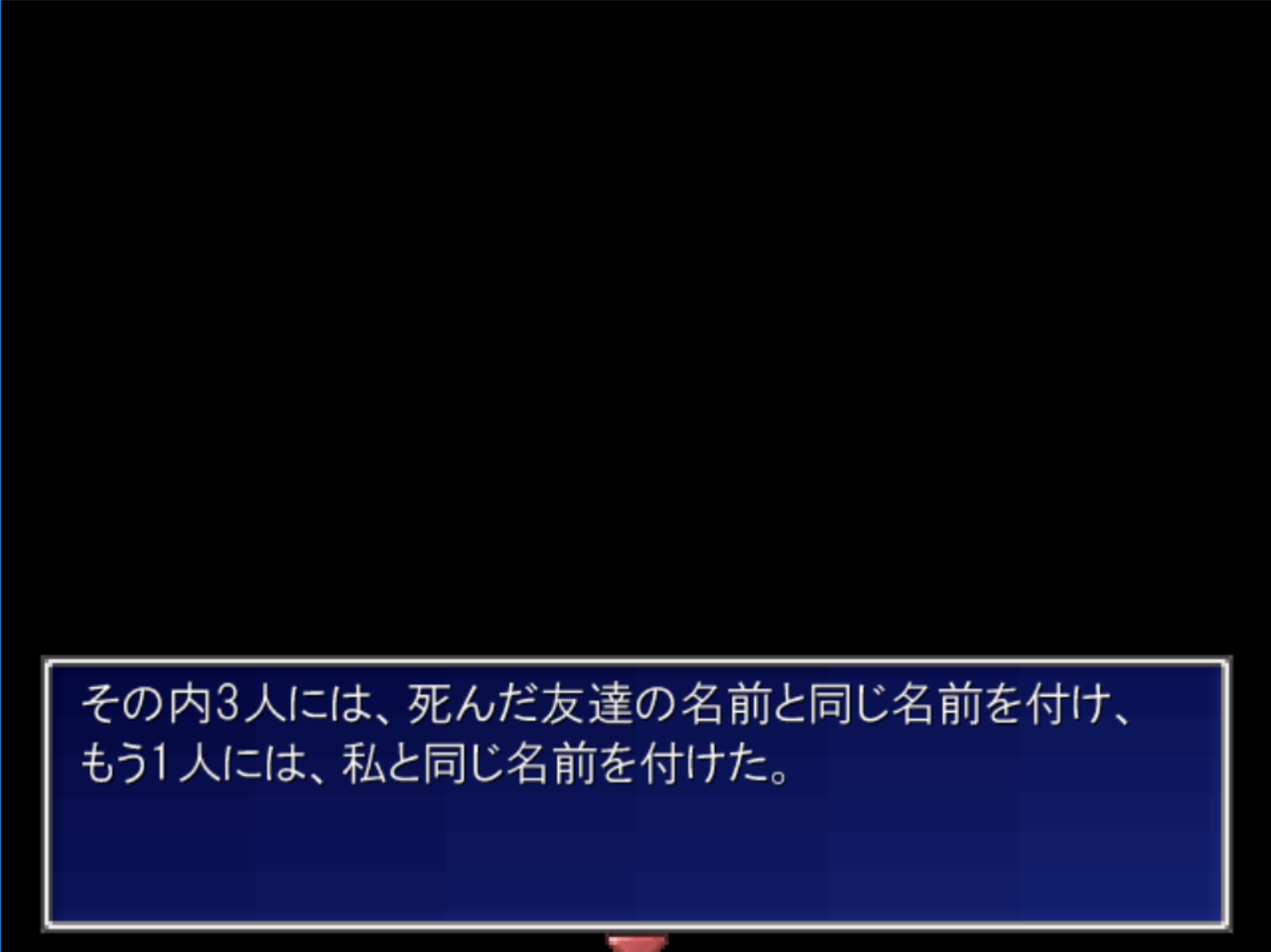 以上が「繰り返す悲劇エンド」になります。このエンドが一番震えました。そう来るか、そう来るか、と思ってしまいました。しかもこの繰り返しエンドってスタアイさんのexe.gameの正規ストーリーとちょっと被ってくるのでなおさら意味深なんですよ。