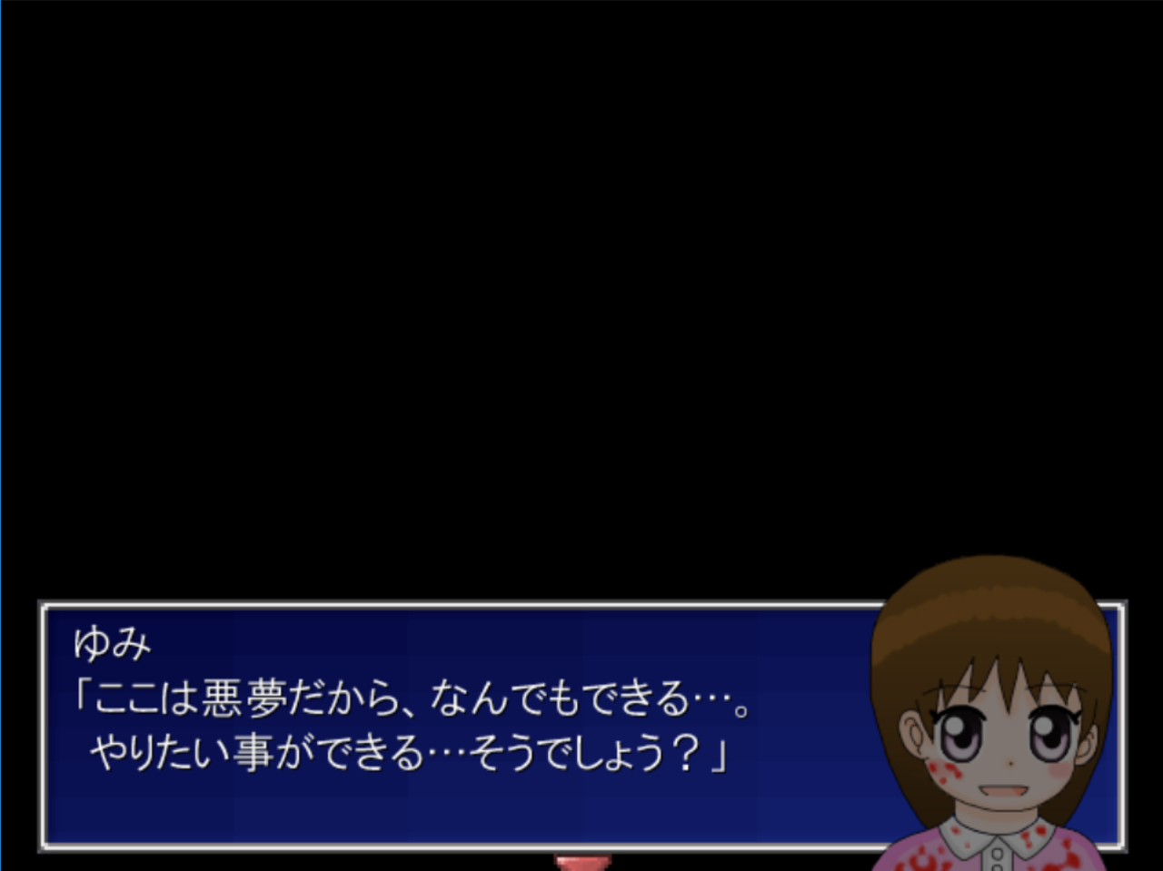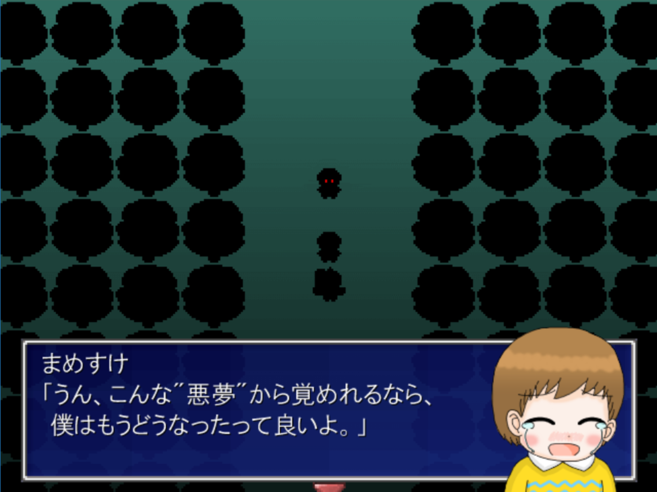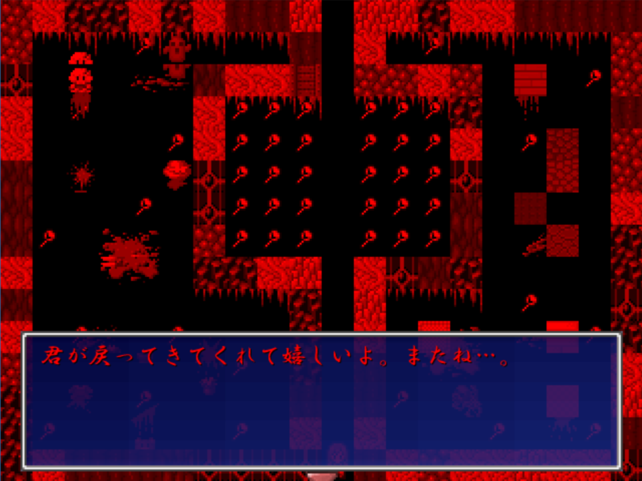 そして、悪夢の世界に来た時の最初の空間で一番下に行きエンターキーを押します。するとそこには…。これ以上はお話しません。とにかく見てください。