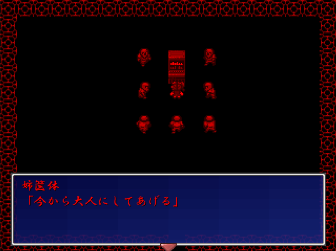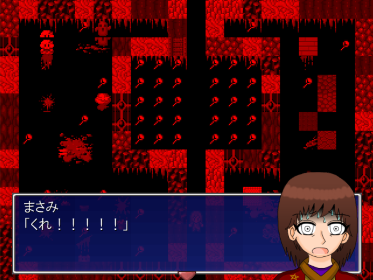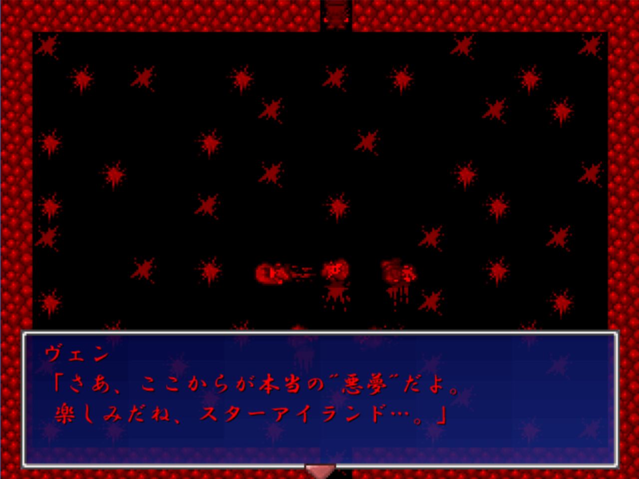 そして、悪夢の世界に来た時の最初の空間で一番下に行きエンターキーを押します。するとそこには…。これ以上はお話しません。とにかく見てください。