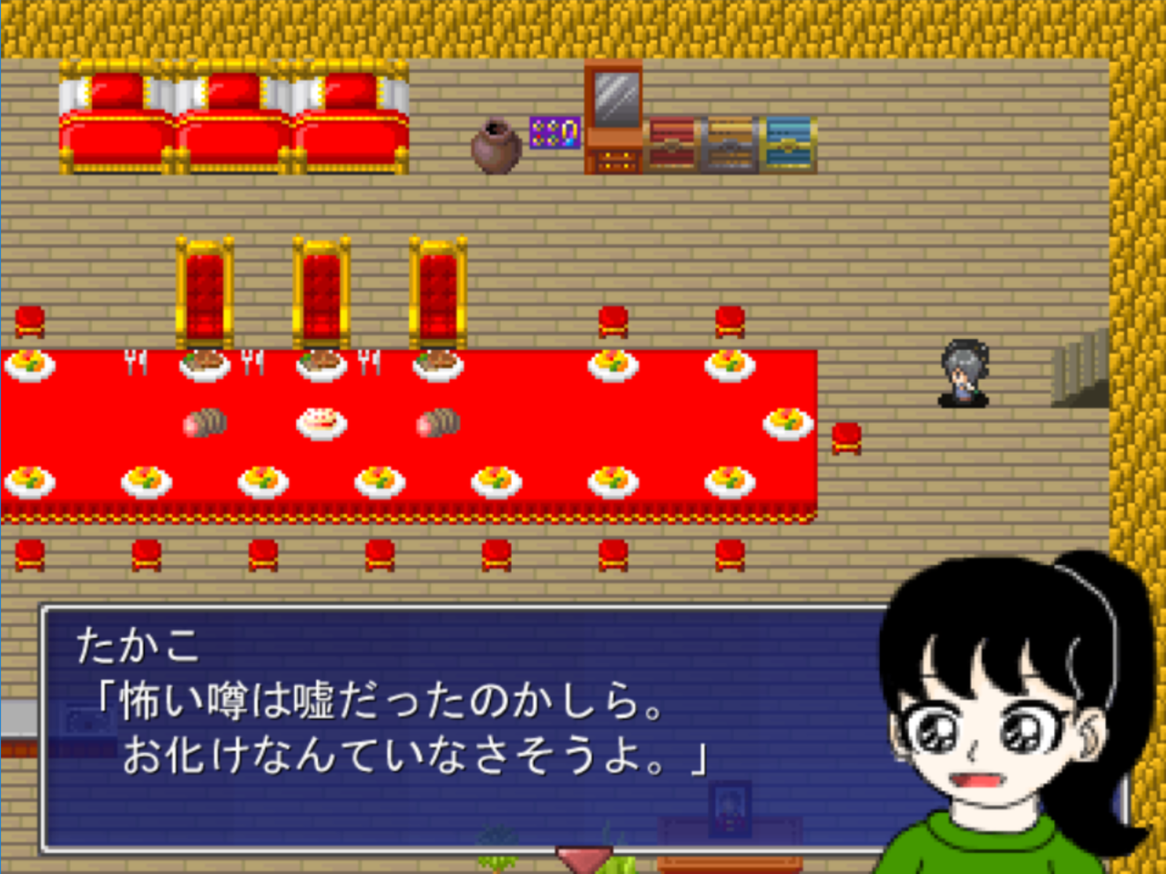 雪子さんが無事に旅立ったのを見送った後、元の道を戻るとあの豪華な大部屋はこんなすさんだ小部屋に変化していました。いや、戻ったというべきか。