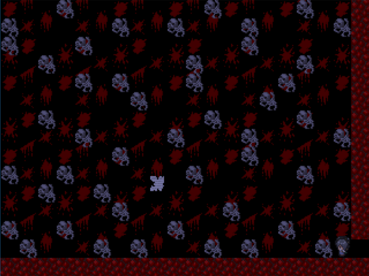 何ですかこの惨状は。骸骨がいっぱい。血糊もいっぱい。とにかくとんでもないくらいの人が殺されたであろう部屋です。