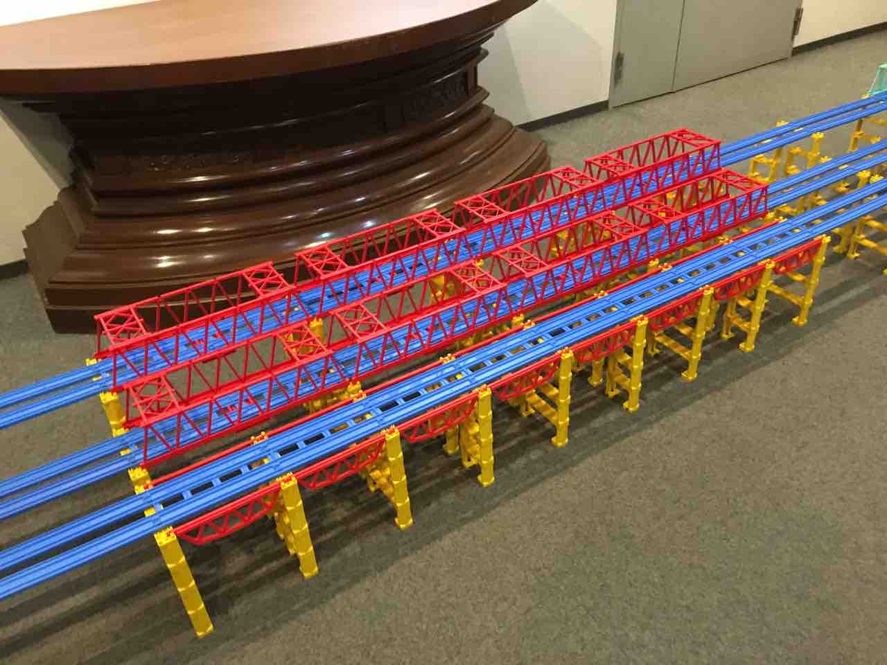 このイベントでは記念館の中のギャラリーと呼ばれる部屋を使いプラレールレイアウトを組み立てました。組み立てるのは松岡純正さんですが、主催が別の団体(I♡NET、あそびい横浜)であるため、名称が異なっているみたいです。中身は2時間の時間制限がある以外は普通のプラフェスでした。