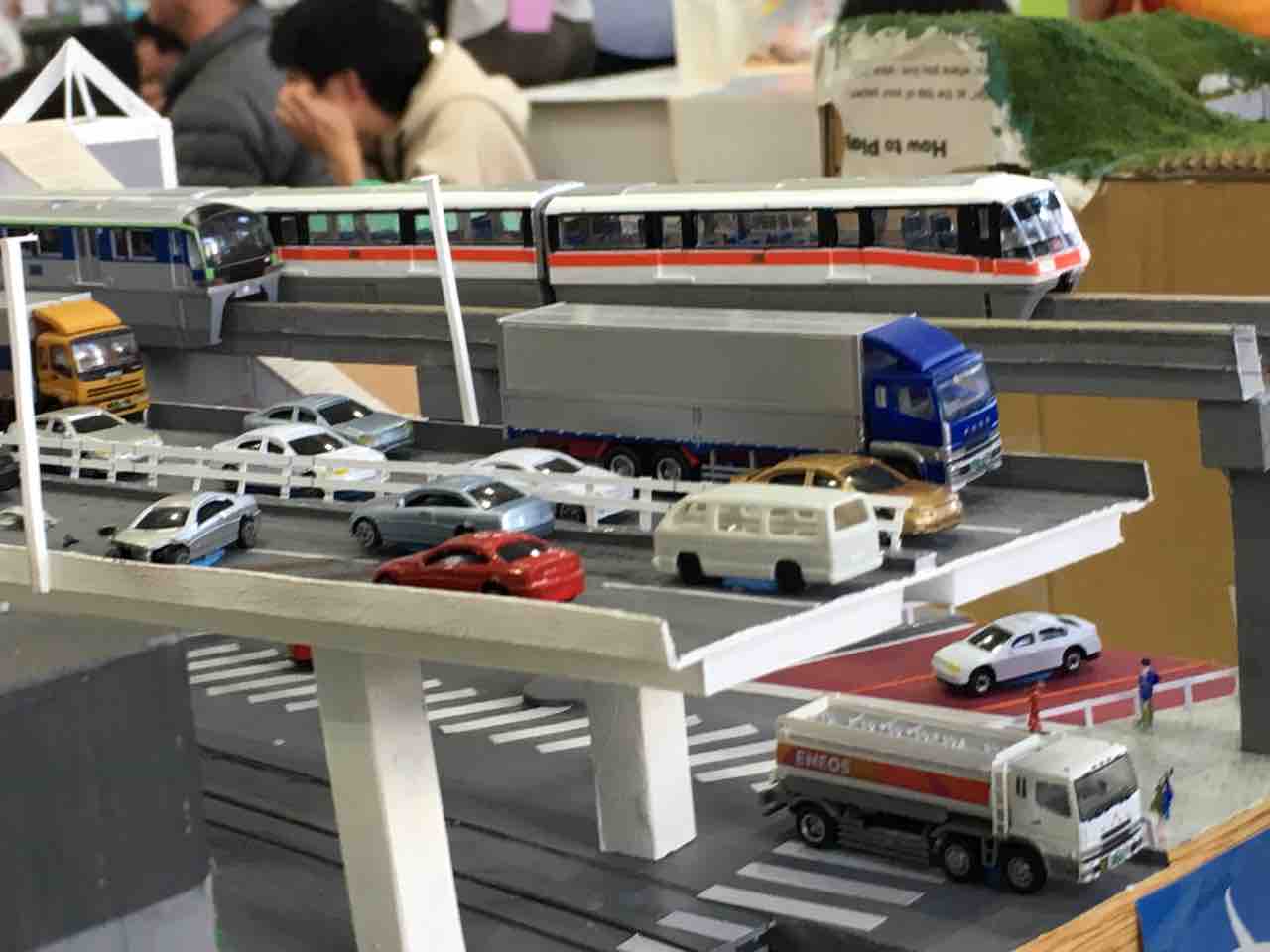 このような高速道路やモノレールの高架橋も紙で再現されています。紙でしっかりとモノレールを乗っけることが出来るのですから、紙の力は侮れません。