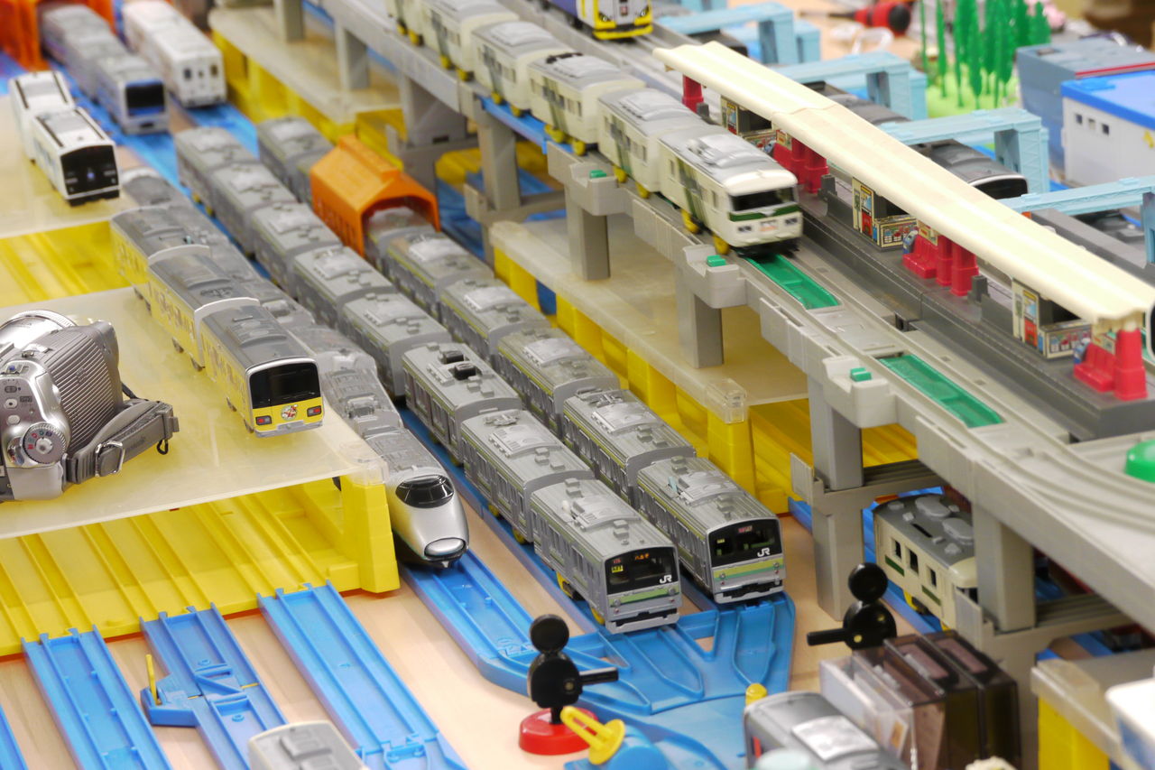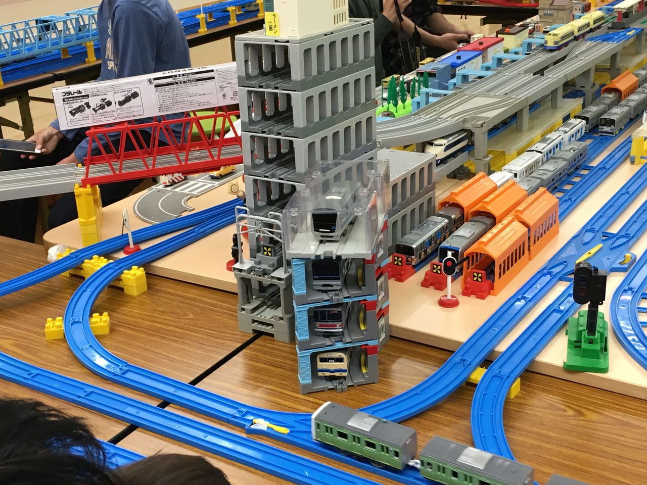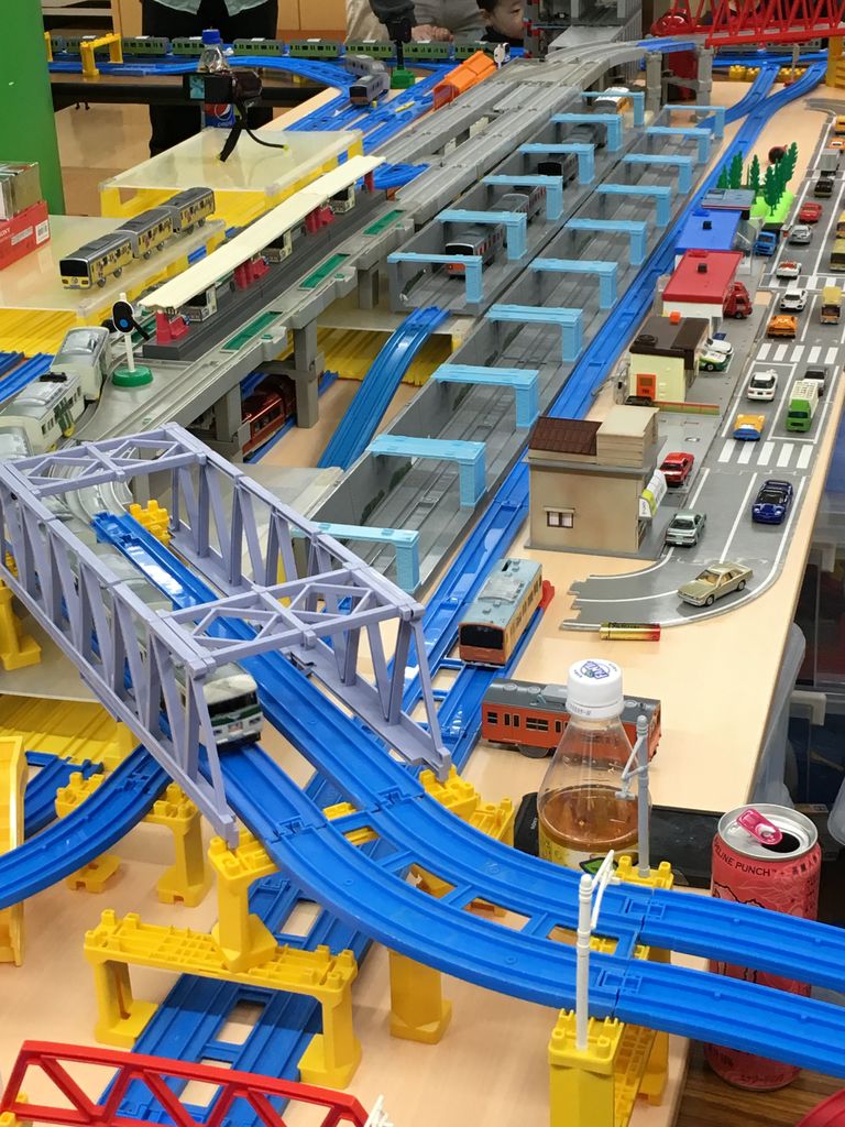 無論レイアウトの細部を見てみると中々凝ったものになっており、改造車を見せることを第一に考えながらも、トミカタウンを組み立てたり、切りとおしレールを何本も繋げたり、車両をたくさん並べられる車両基地を作ったりなど随所に見どころが込められたレイアウトでした。