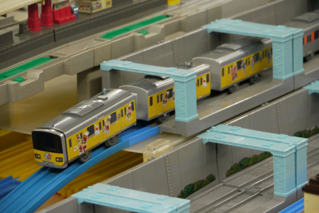 改造をしない私にはよく分からないのですが、どうも50050型クレしんラッピング車両にはラッピングを剥がしたくなる魅力があるようです。ちなみに通常塗装の東武50000系は今のところ製品化されていません。タカラトミーさん製品化はよ。