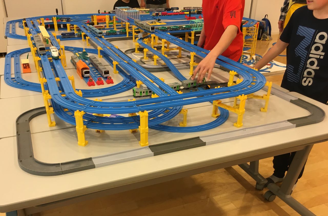 そしてカプセルプラレールの展示も。このレイアウトを設営した人曰くカププラ以外の製品も使用しているとのこと。お店の模型などはカププラシリーズではないそうです。