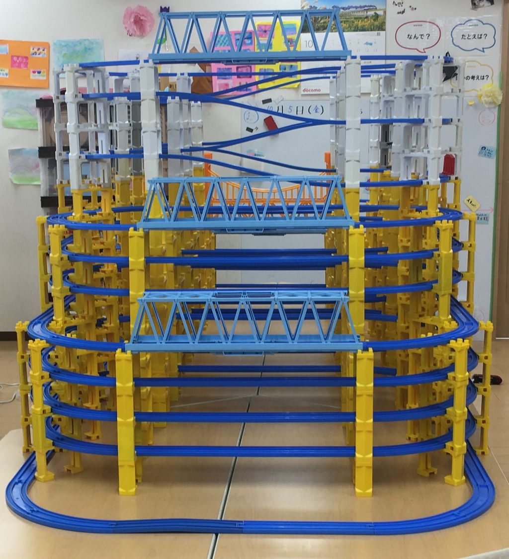 作ったレイアウトはこちら、高さ12段のタワー型レイアウトです。曲線同士が1段ずつ立体交差するように設計。