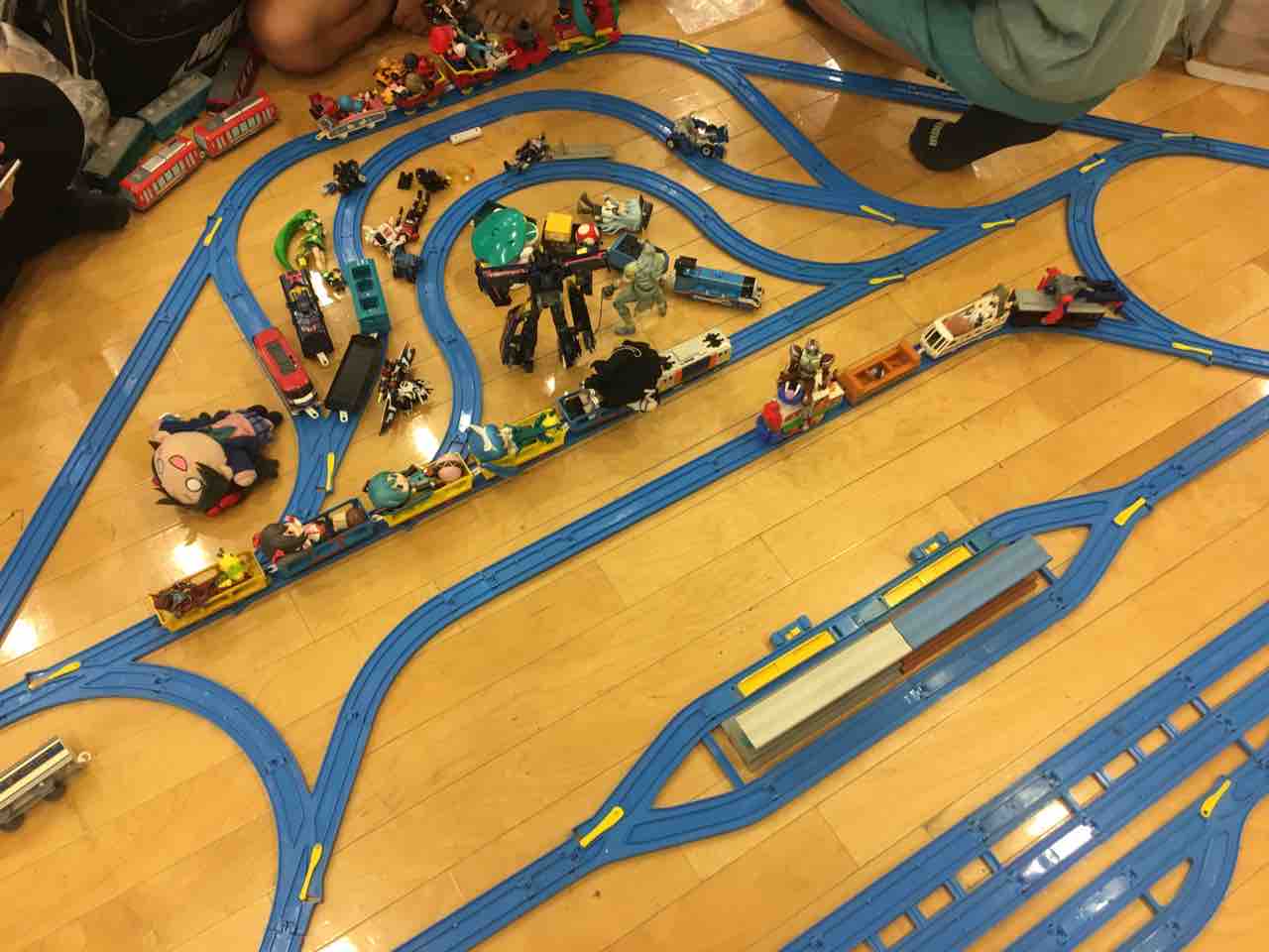 「展示会」と言ってもプラレールレイアウトを広い部屋いっぱいに敷き詰め、その中を参加者が持ち込んだ車両を走らせることが出来ます。
