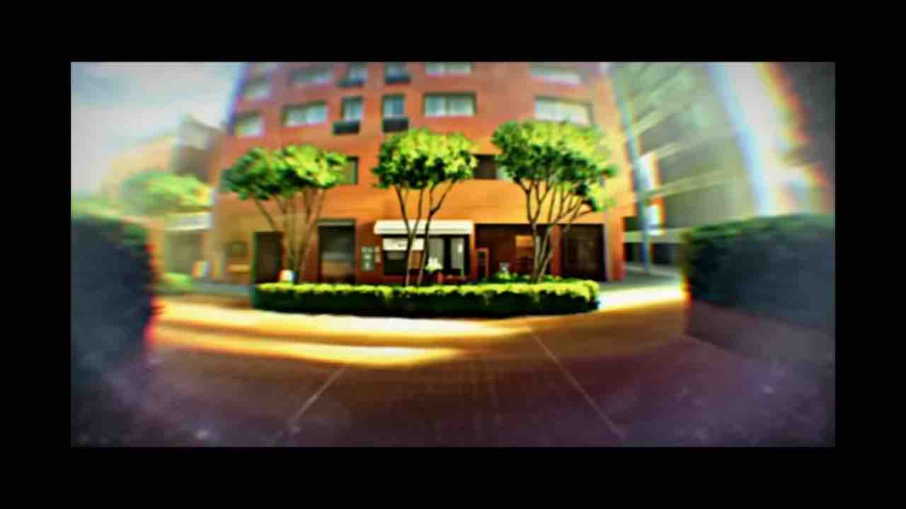 アニメ18話の場面転換にて描写されていたビル。アニメカットは向かいの自販機から広角レンズで眺めた特徴的なものになっている。