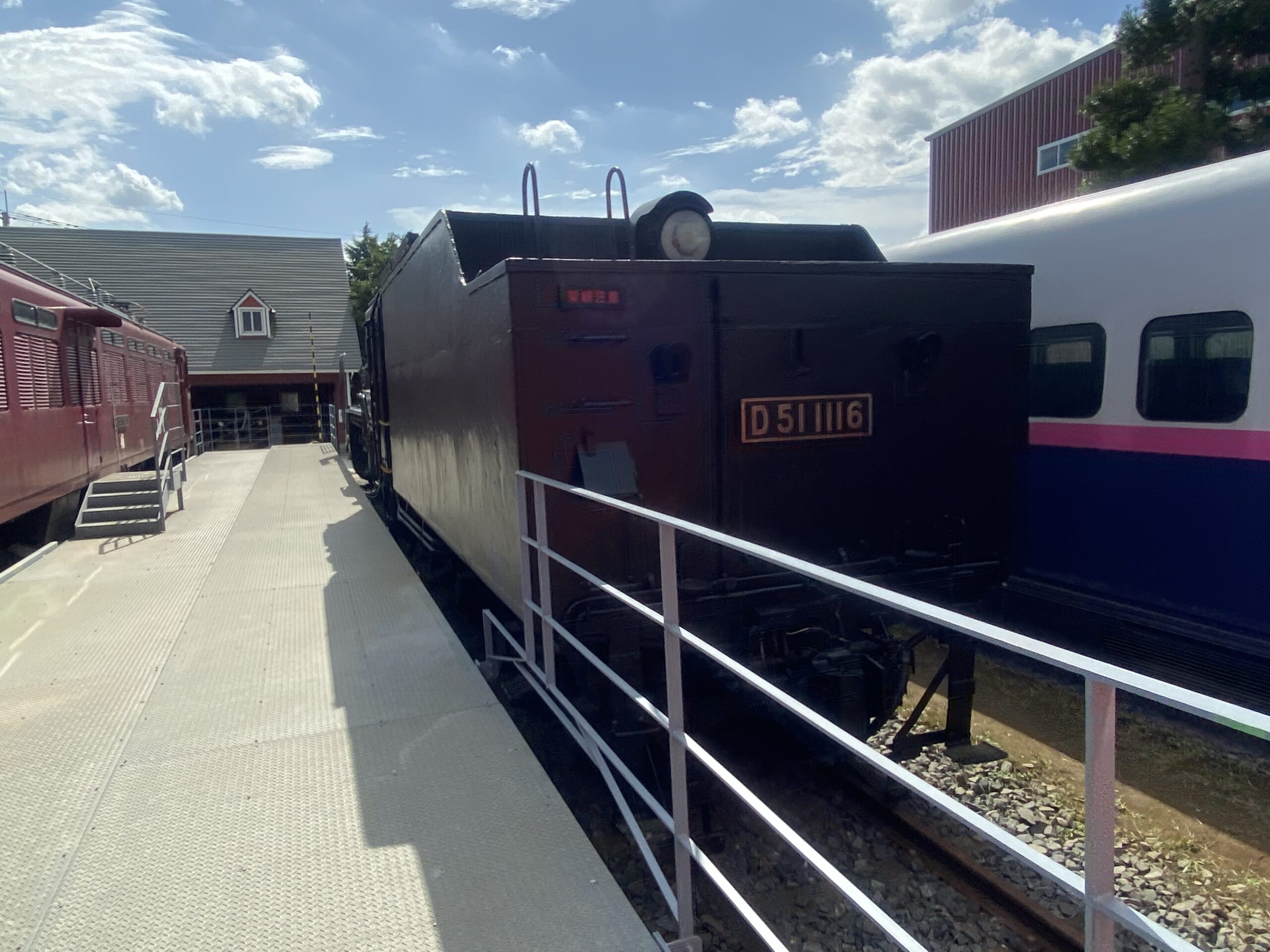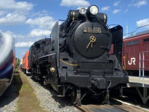 E2系の隣に腰を据えているのはD51蒸気機関車。蒸気機関車の王様です。