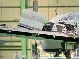 私が訪問した当時はまだ組み立て中で、このようにエンジンはむき出し、水平尾翼や尾翼がない状態でした。