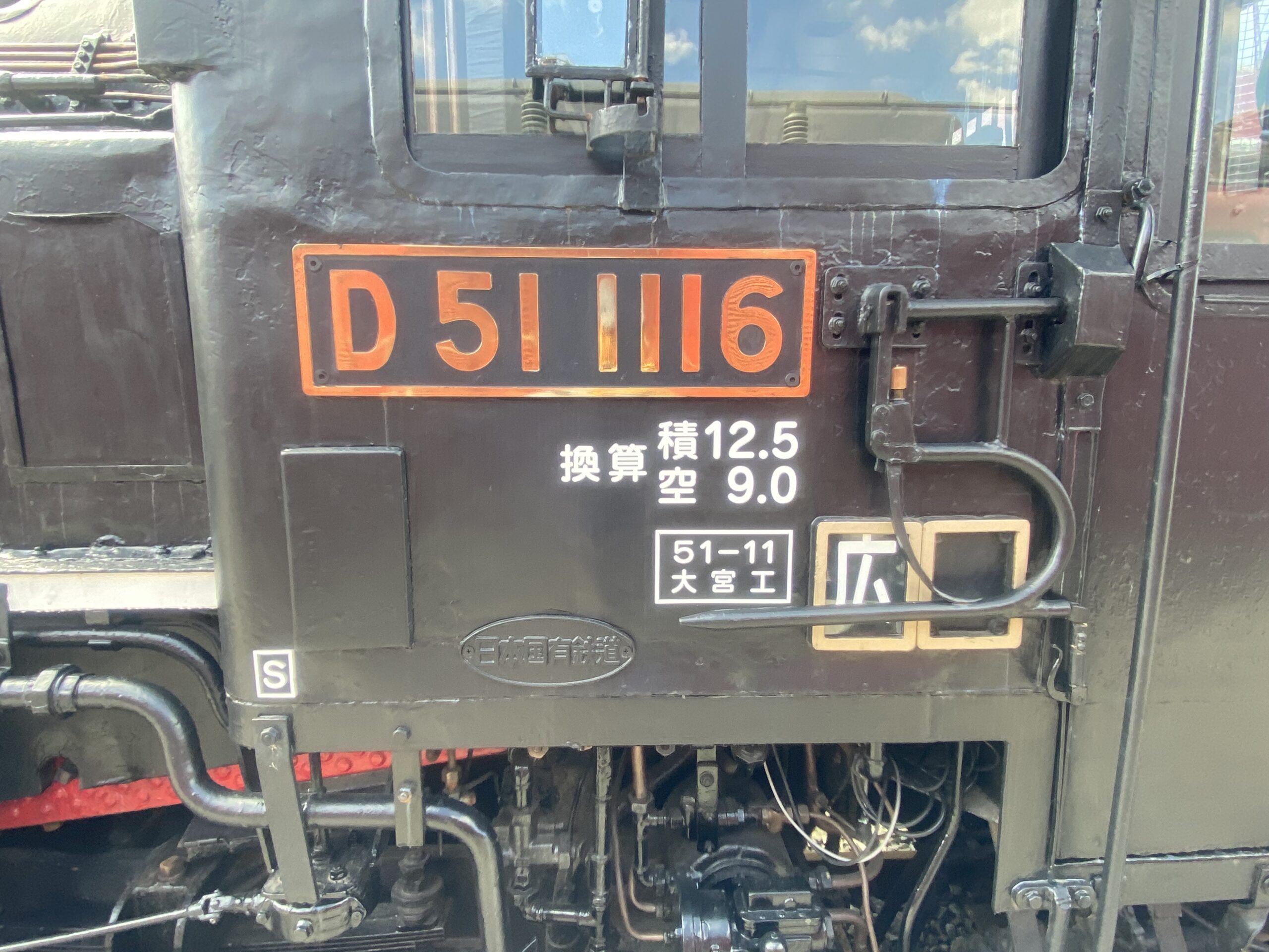 車番を見てみると、このD51は1116号機であることが分かります。1000番台を超えているということは、D51の生産が終了するかしないかの時期でしょう。