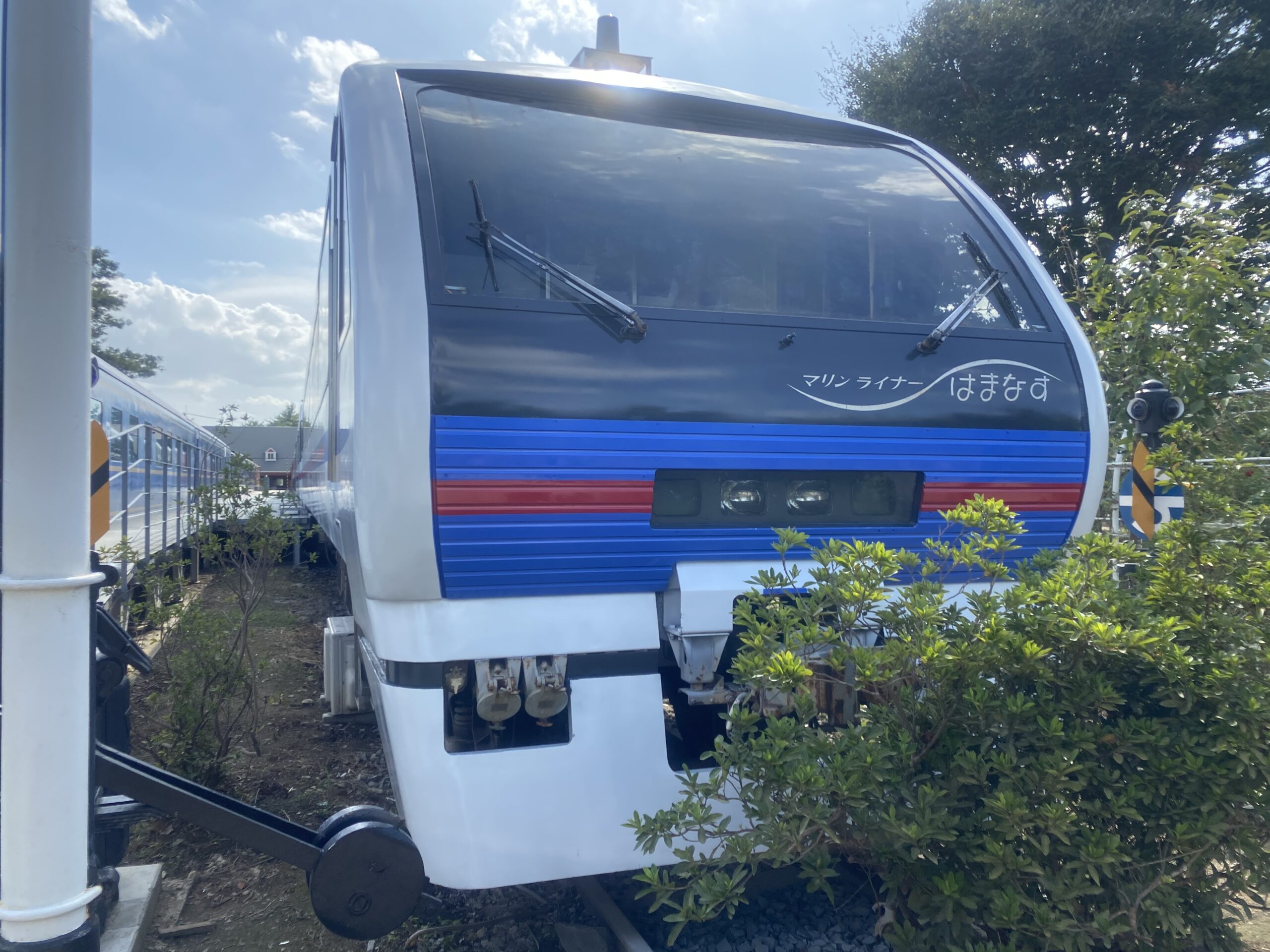 キハ102の後ろには、流線形が特徴的な特急風の気動車が飾られています。もともとは大洗駅を中心に路線網を持つ「鹿島臨海鉄道」という茨城県の鉄道会社が所有していた快速用ディーゼルカー。7000形というらしいです。