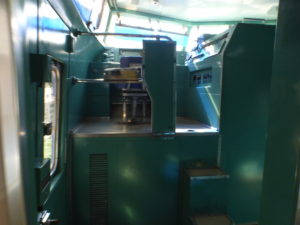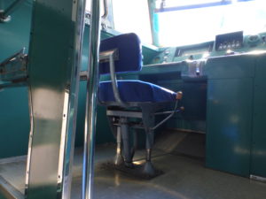 デッキに入るとすぐに運転室がお出迎え。この運転室も誰でも入れるようになっています。とんでもない大サービスですね。
