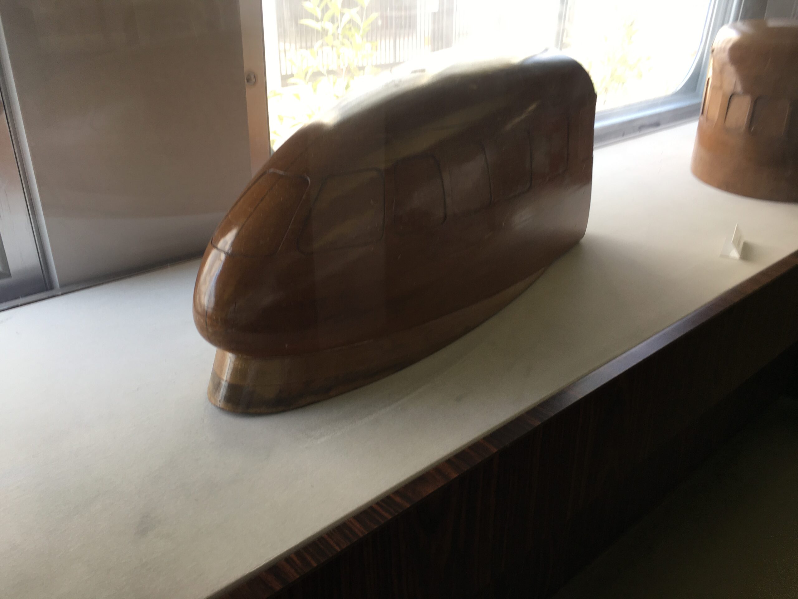 他にも資料館内には新幹線開発時に検討されたであろう模型類も数多く展示されています。風洞実験などに使われたのでしょうか?下の写真の新幹線のデザインは初めて見た気がします。このような形の新幹線が走っていた世界線もあったのでしょうか。