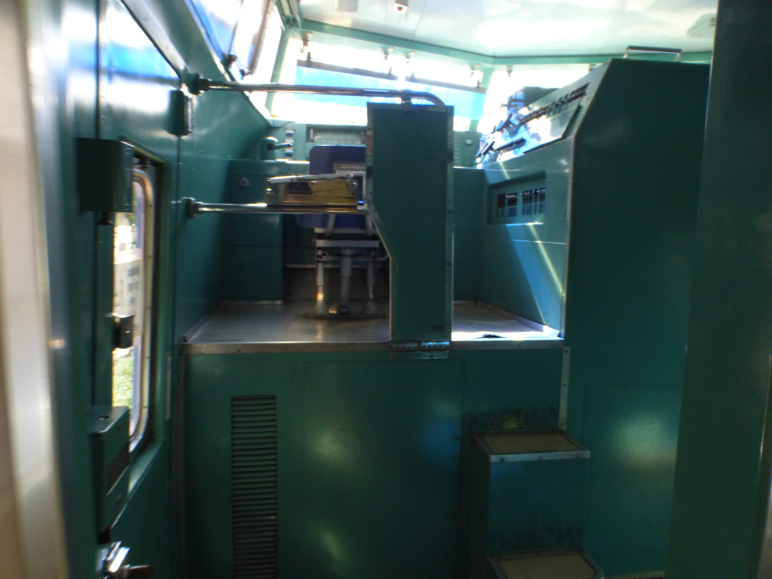 そして運転席から見える景色なのですが、視界がかなり狭い!951形の鼻が長いのと、運転席がかなり高い位置にあるだけに地面もほとんど見えず、中々運転し辛そうな構造になっています。