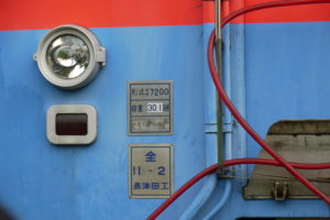 この先頭側は普段は他の車両との連結で隠れてしまうために、このような銘板があってもさほど問題はなかったのでしょう。こんな一面も見られるのもまた面白いところです。