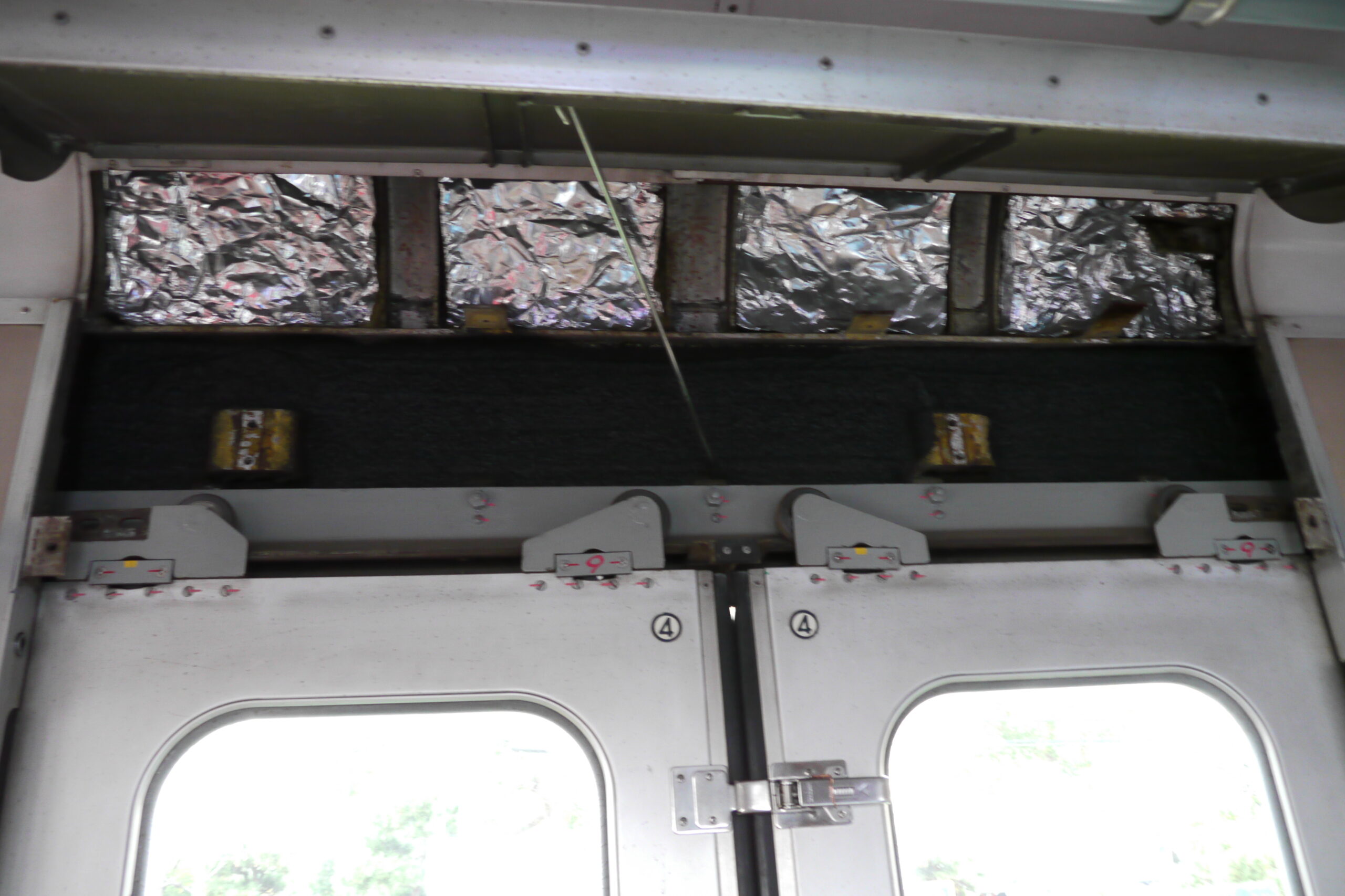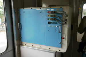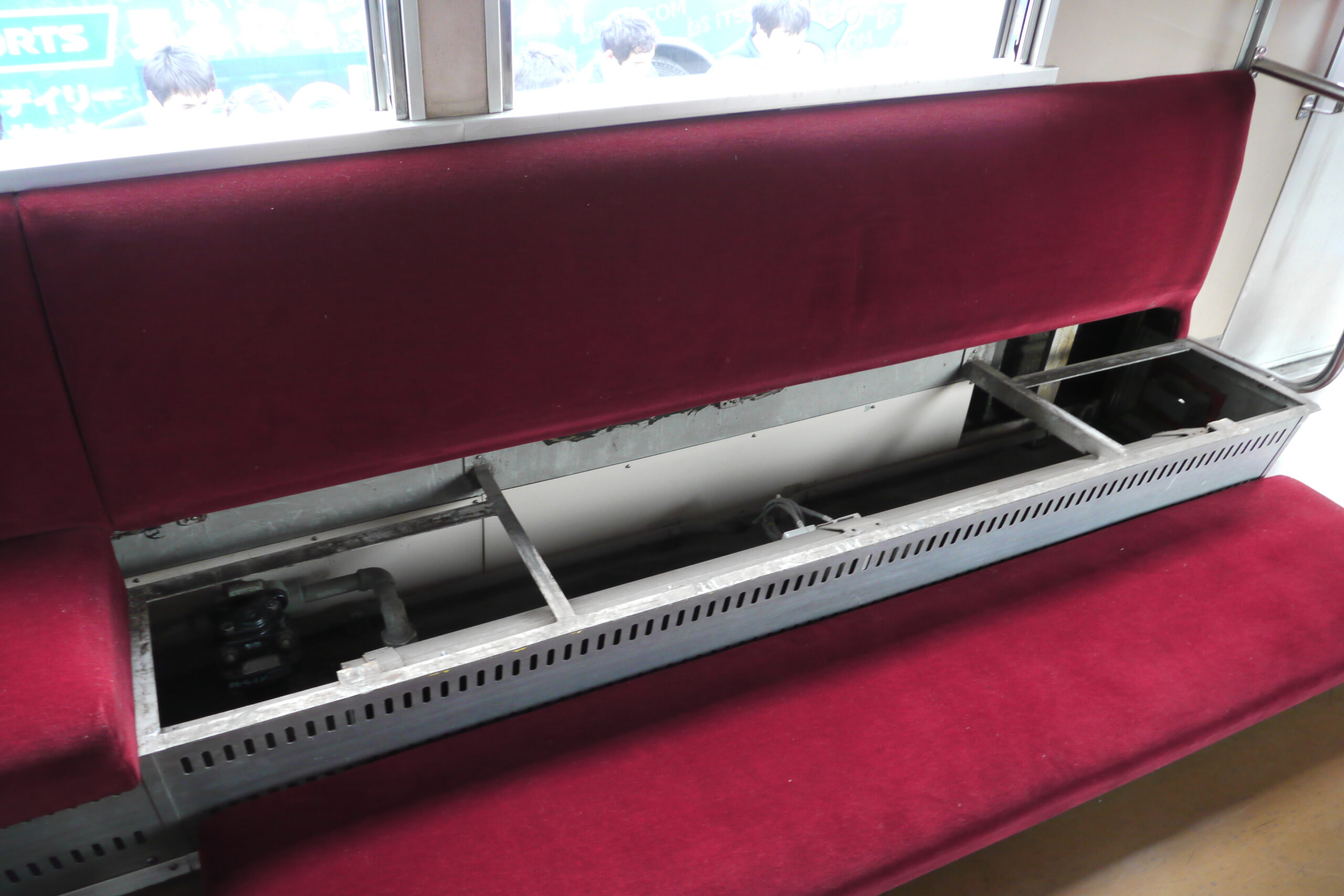 ですが、座席下の暖房機器やドア開閉器の蓋が開けられていて、中身が見えるようになっていた写真もチラホラ。電車の展示とだけあって、このような中身も見せる方針にしていたのでしょう。
