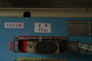 運転台近くにあった物々しい装置。“8000系”と書いてありますが、何らかの連結に使う装置でしょうか。