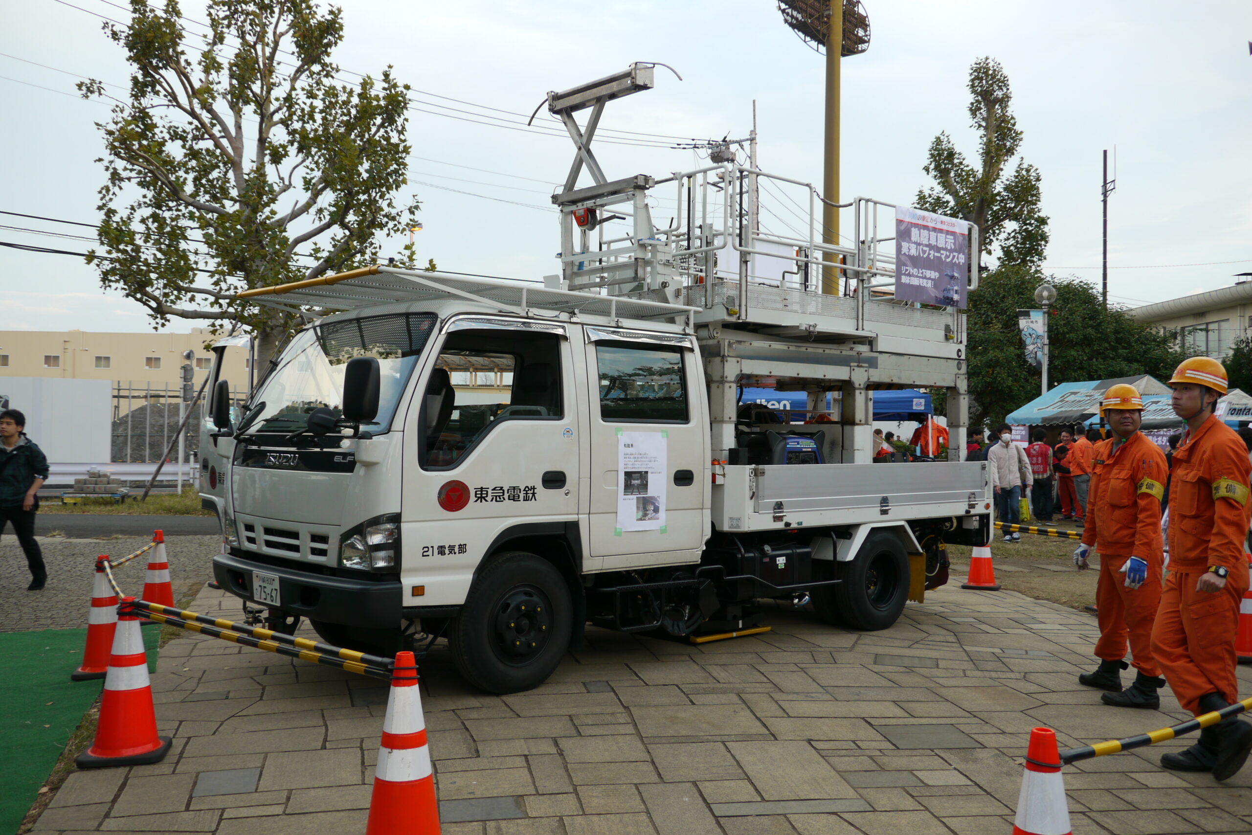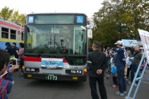 この2013年11月のイベントは、東急線の沿線で開催されたもの。この写真にもあるようにバスや軌陸車などの展示もされていました。