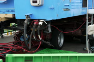 例えばこれは軌陸車。見た目は普通のトラックですが、通常のタイヤに加えて、収納可能な鉄輪を装備。線路の上を走ることが出来ます。