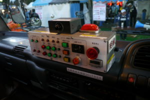 なんと軌陸車の中にも入ることが出来たらしく、こんな写真が残されていました。軌道走行時はこの小さな箱で線路での加減速をするみたいです。しかし、見た目がチープなのが面白い。反対にこれで線路の上を動かせるというのも面白いですね。