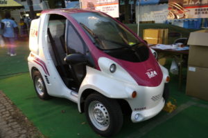 謎の車。法律的には“ミニカー”と呼ばれる車種でしょうか。SF小説に出てきそうな車ですね。ベンチャー企業が製作したのでしょうか。