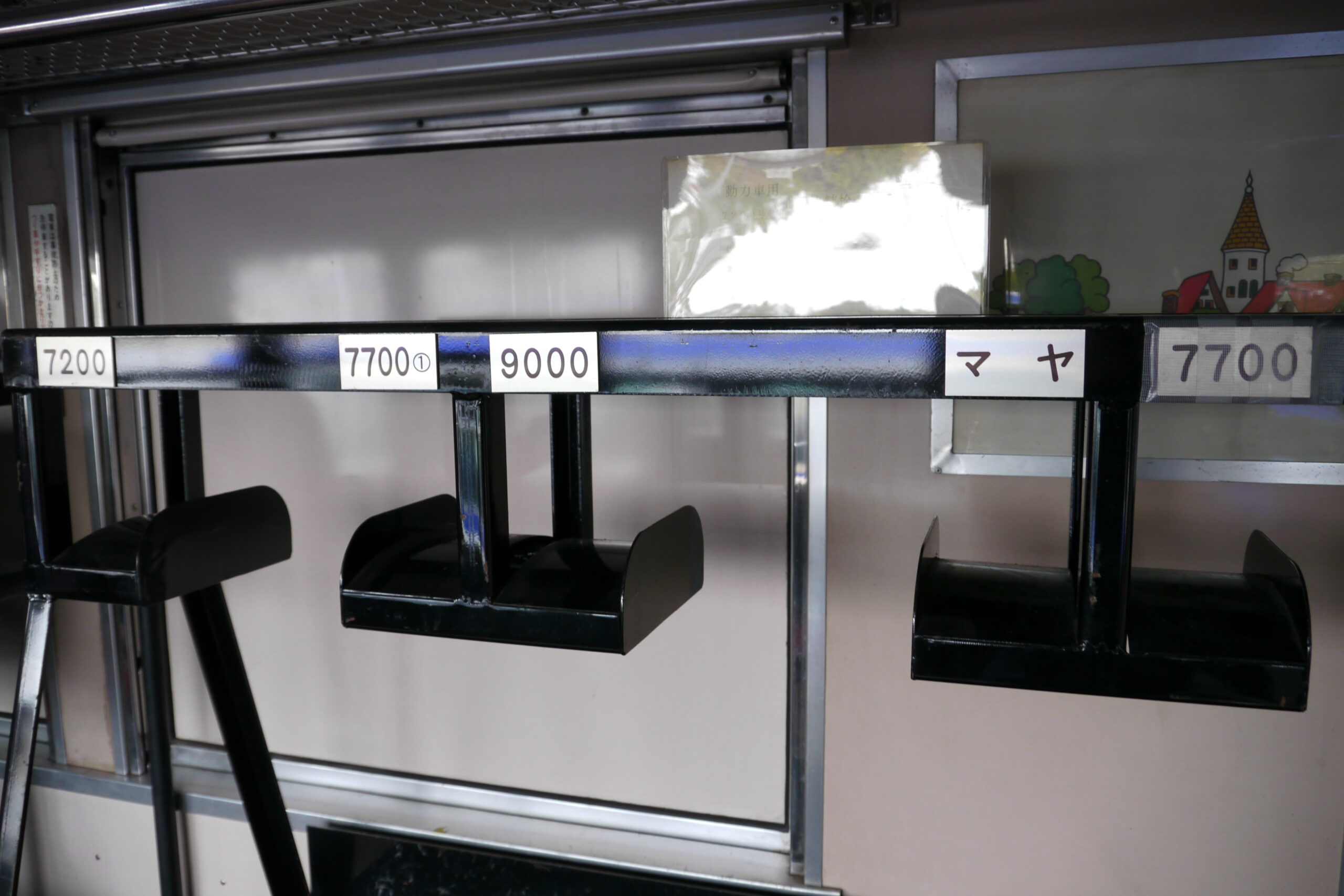 あと、4枚目の写真の“マヤ”と“7700”の後ろにお城のイラストが描かれていますね。こどもの国線時代のものがそのまま残さていたのでしょう。