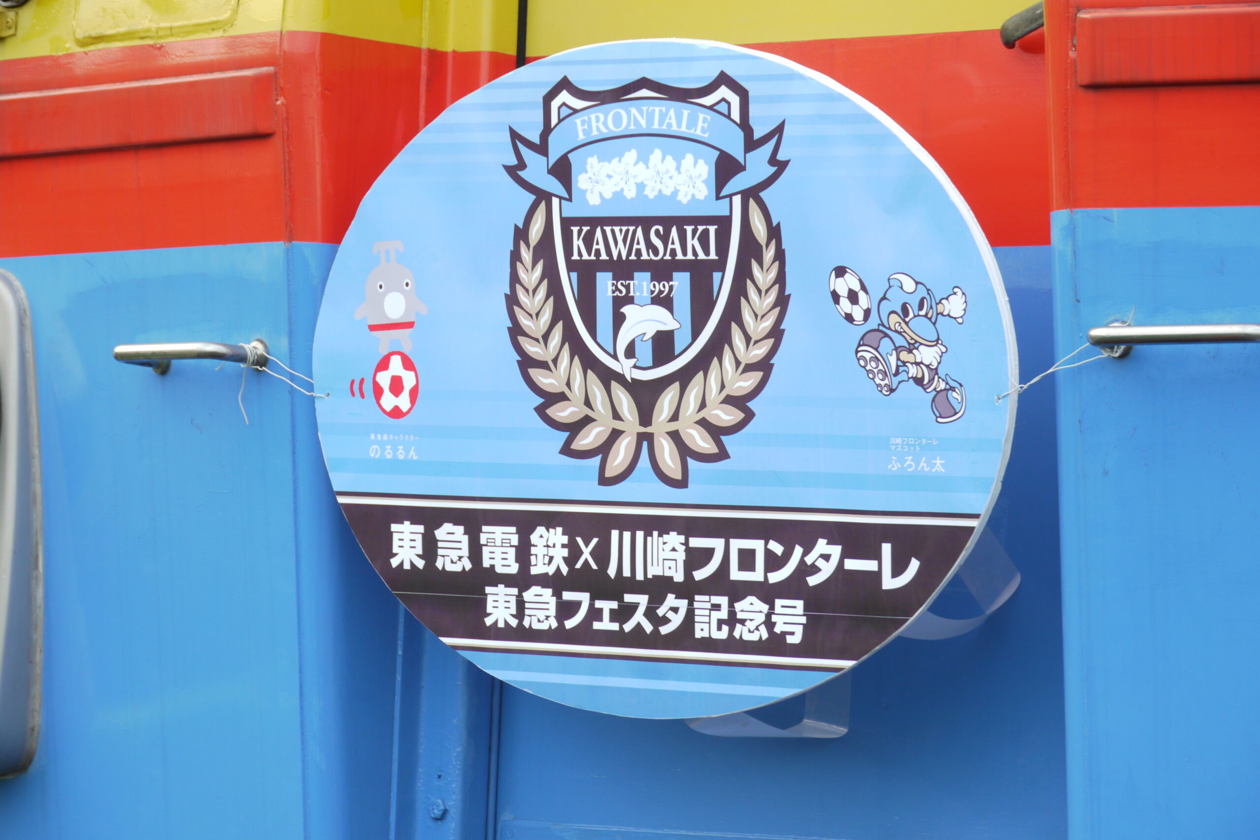 ちなみに、ダイヤカット側の先頭部にはイベントを記念するヘッドマークが。のるるんが器用にサッカーボールの上に乗っているのが印象的ですね。