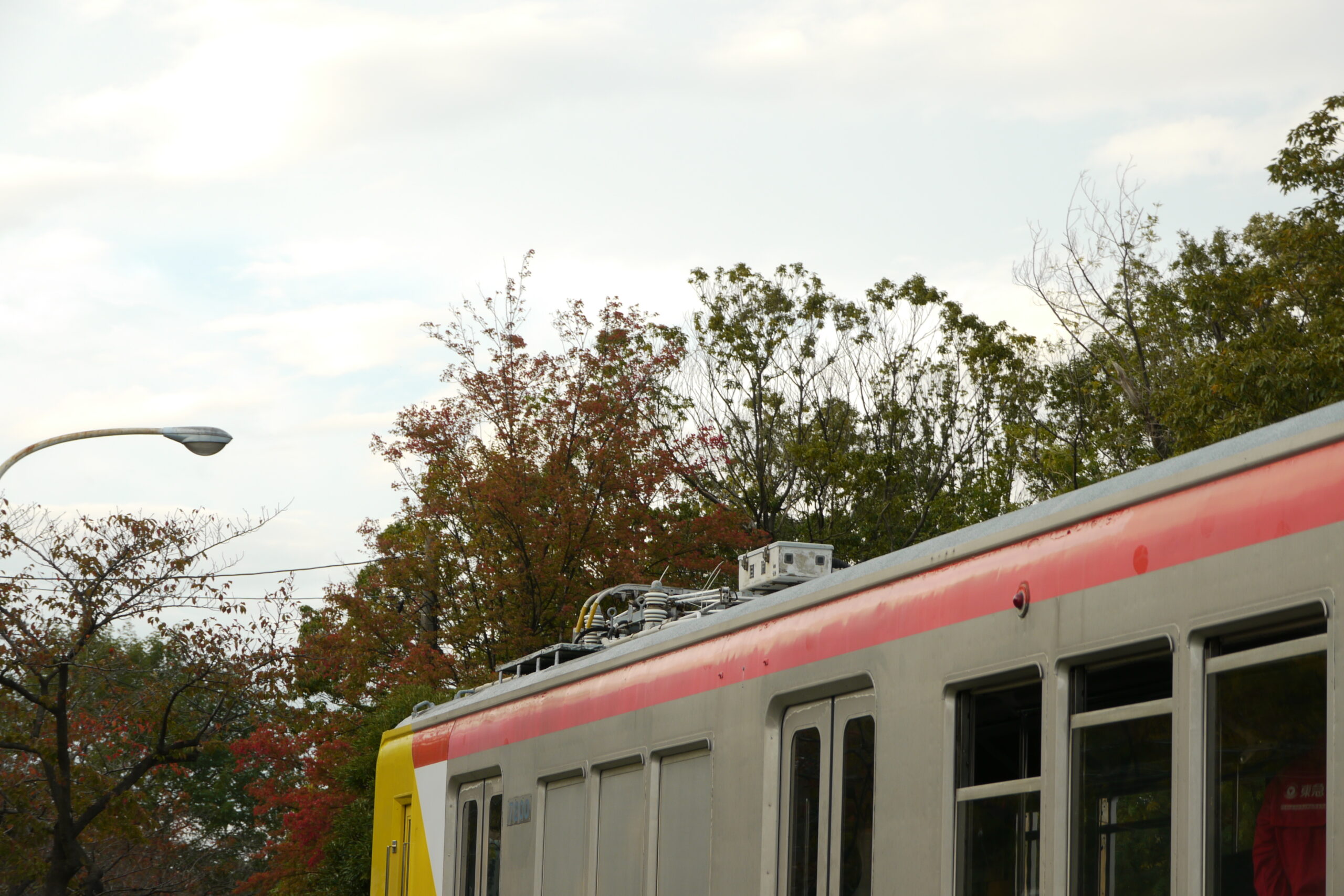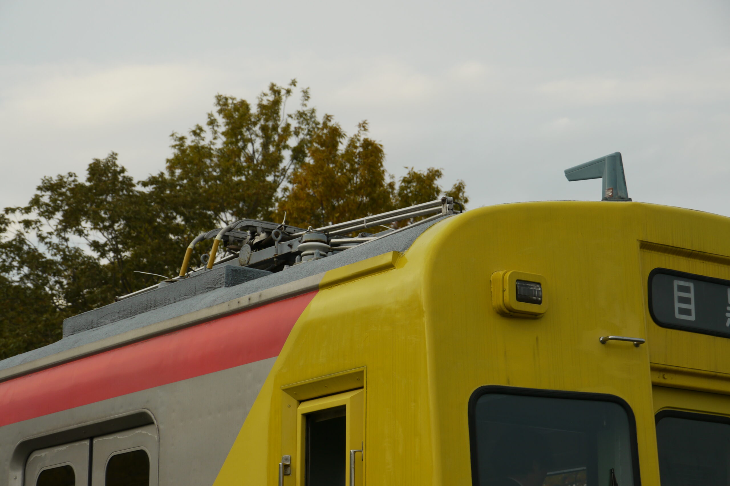 屋根上のパンタグラフ。前後二つ付いています。