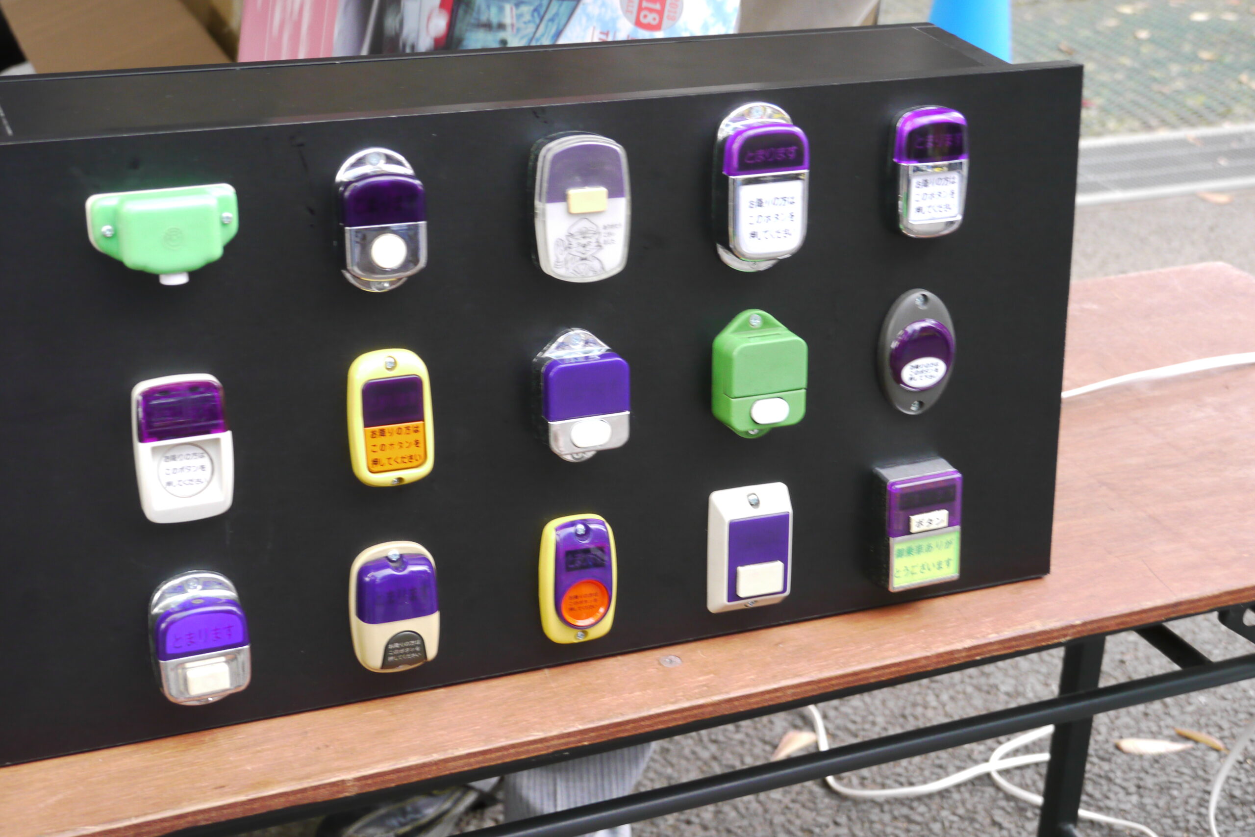 歴代のバスの押しボタンの展示も。他の写真を見てみると自由にポチポチ出来たみたいです。