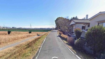 子安公園通り沿いから北に用水路(山田川)を眺めると、アニメの風景と一致する。