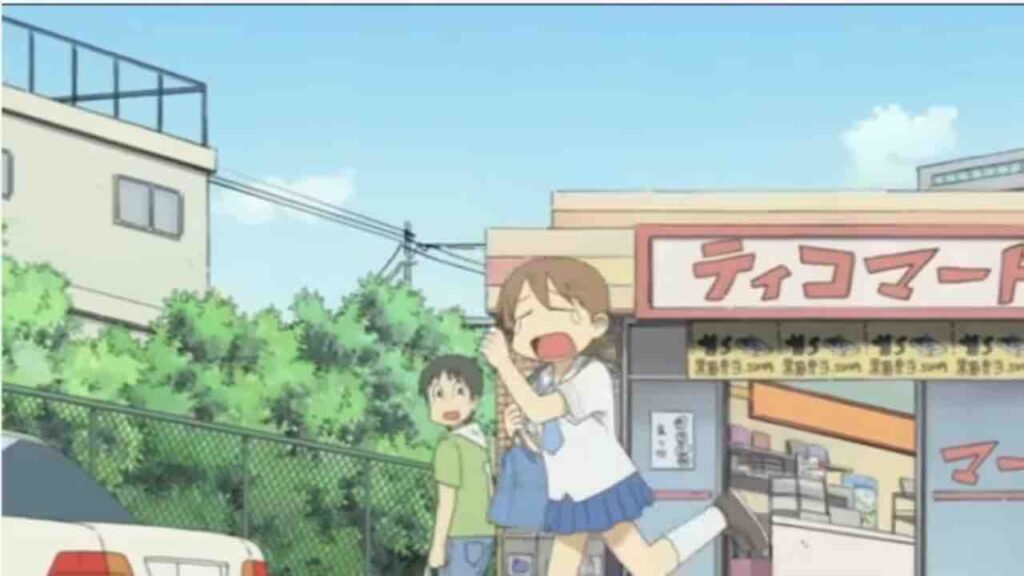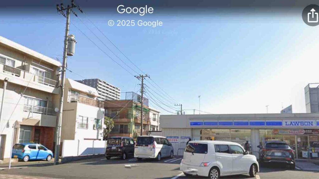 맨션을 등지고 세븐일레븐 표지판을 보면 애니메이션 배경과 일치한다.